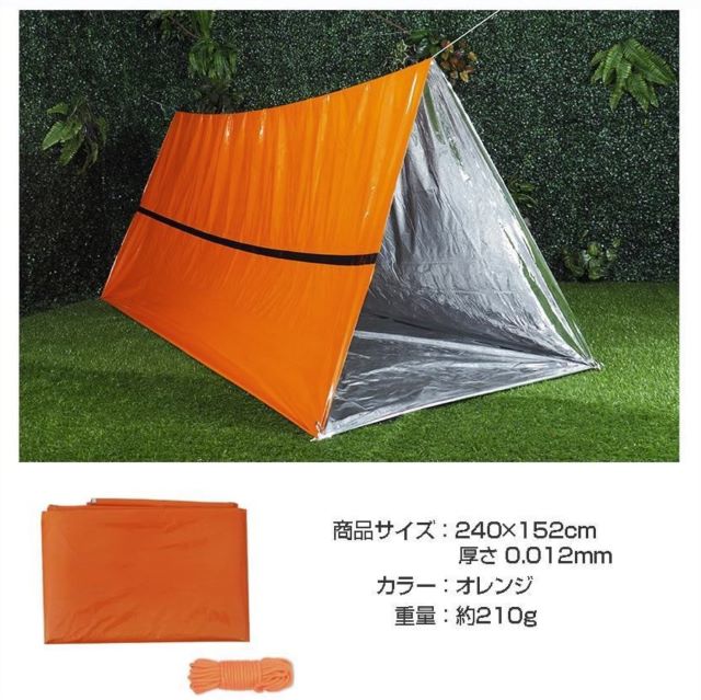 【緊急用 サバイバルテント】 オレンジ グリーン【各3サイズ ・寝袋90x200cm(ロープなし) ・ブランケット130x210cm (ロープなし)・テント150x240cm(ロープ付き)】