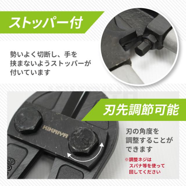 | 最大切断能力 | ・ボルト/鉄筋/鉄線φ10mm ・ステンレスφ8mm ・ワイヤーφ7mm ・ケーブル(銅線に限る)φ12mm |