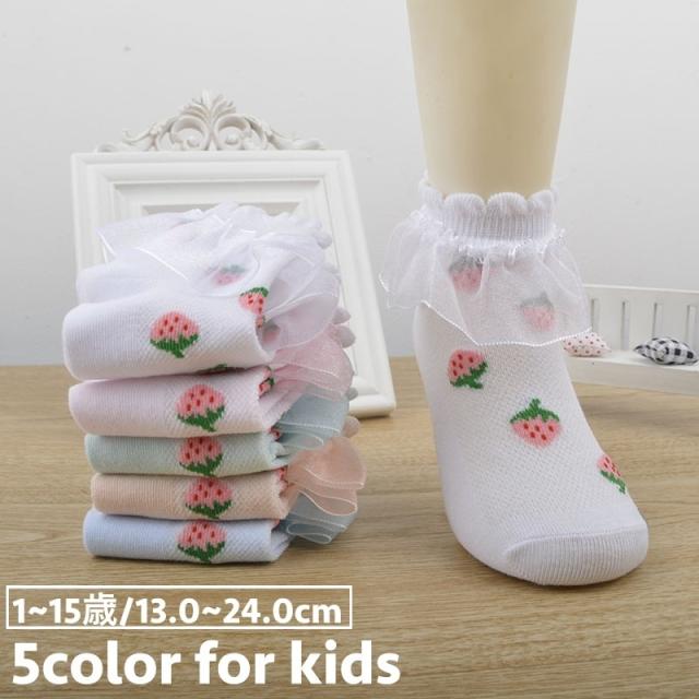 靴下 ショートソックス キッズ ベビー ジュニア 子供用 女の子 ガールズ くつ下 くつした ショート丈 レース フリル イチゴ