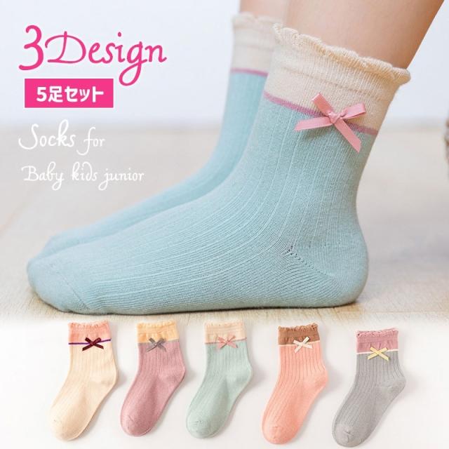 靴下 ソックス 5足セット 子ども用 キッズ ベビー ジュニア 女の子 リボン バイカラー ツートンカラー 単色 ドット かわい
