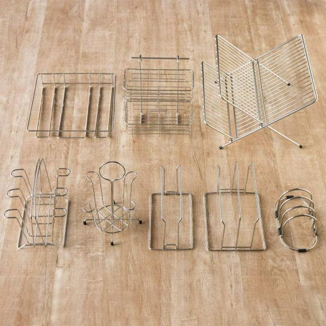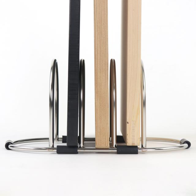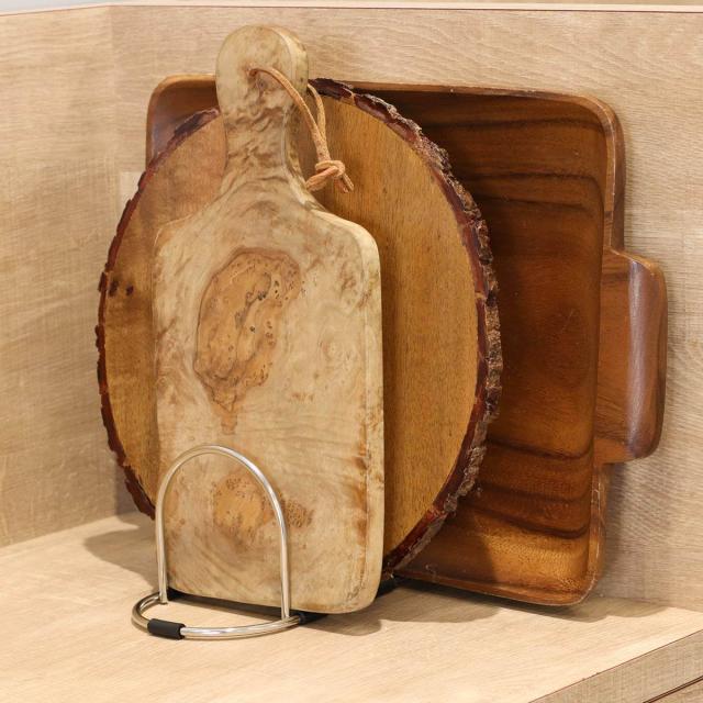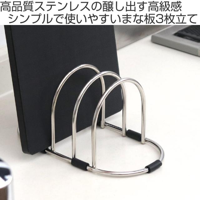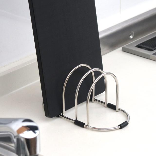 用途に合わせてまな板を使い分ける方にお薦めな、3枚のまな板を同時に立てられるまな板立てです。魚や肉を切るそれぞれのまな板と、野菜を切るまな板を分けて衛生的にまな板を収納できます。トレー等も立てられます。