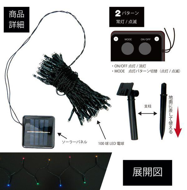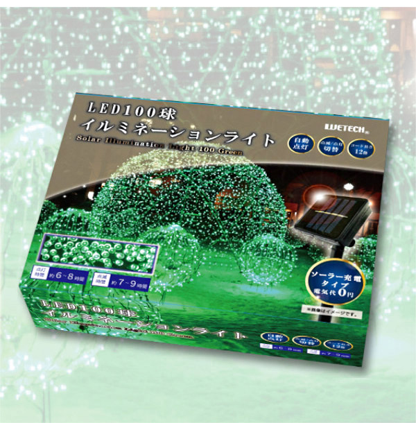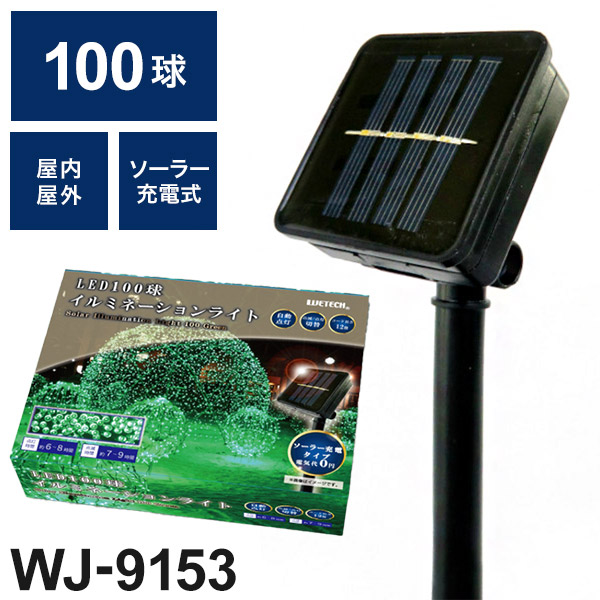 LED 100球 イルミネーションライト グリーン WJ-9153 ソーラー充電 屋外 屋内 兼用 自動点灯 ライト イルミネーション クリスマス ツリー 省エネ エコ(代引不可)