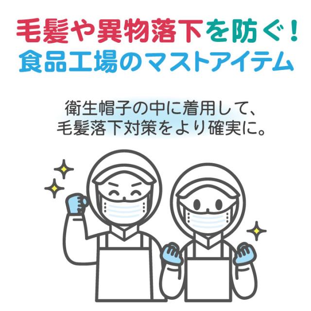 衛生帽子の中に着用して、安心・安全性をより確実に。