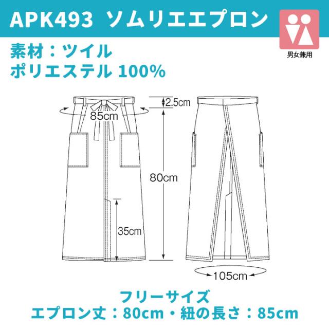 KAZEN カゼン ソムリエエプロン 耐塩素 退色防止 洗濯に強い ポリエステル100% サービス カフェ 飲食業 厨房 ホテル レストラン ネコポス kz-apk493-c4