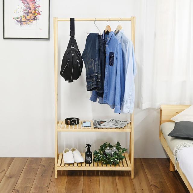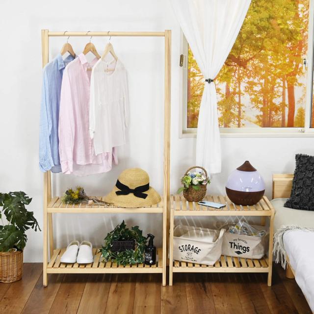 天然木の自然な風合いと、お部屋を明るく演出してくれるナチュラルな色が魅力のハンガーラックです。衣類だけでなく、バッグや帽子などの収納にも便利です。圧迫感を感じにくく、一人暮らしの方やワンルームにお住まいの方にもおすすめです。