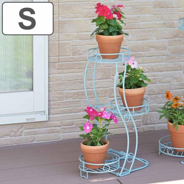 フラワースタンド 心春 S型 折りたたみ フラワーラック S ブルー ( プランター スタンド ココハル ガーデニング用品 花台 鉢置き 園芸 鉢台 プランタースタンド 水色 5号鉢 6号鉢 5kg プラントスタンド 鉢スタンド 3段 )