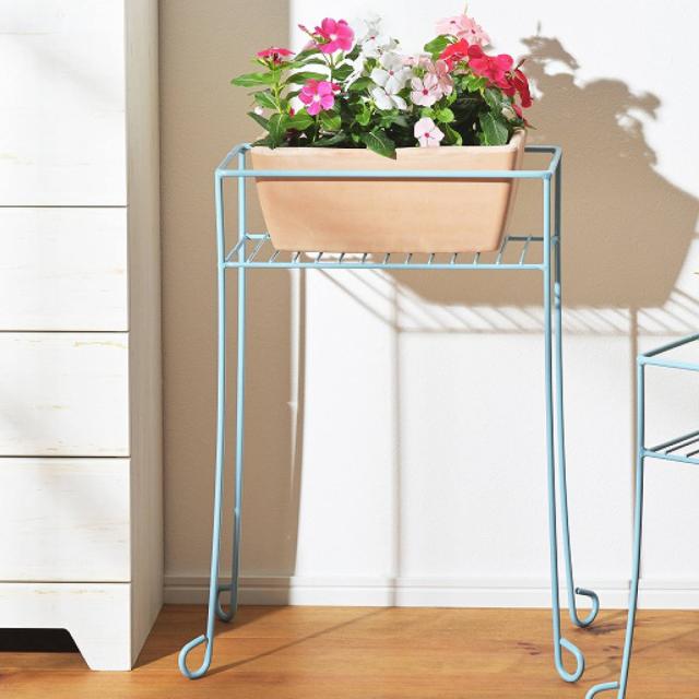 水色のアイアン調フレームがアクセントになるアイテムです。サイズ違いのスタンドを組み合わせれば、立体感が生まれ空間に広がりを感じます。