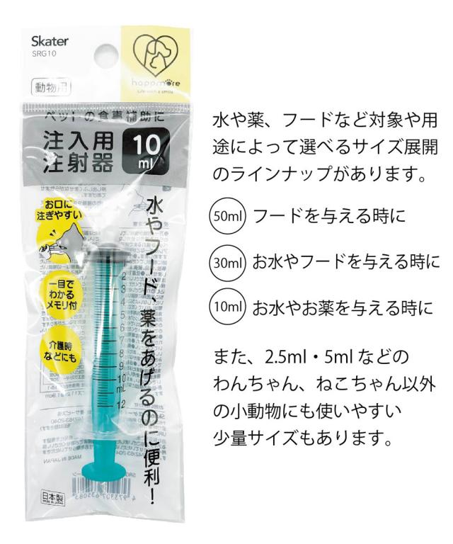 ペット用 注射器型注入器 シリンジ フィーダー ペット用品 注入用 注射器 10ml 食事 補助 水分 補給 薬 フード 介護 介助 手助け ペット 猫 犬 動物 日本製 SRG10