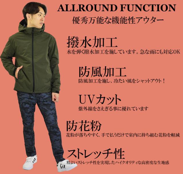 ■撥水加工をはじめ、防風加工、防花粉加工、UVカット加工まで多機能装備、程よくストレッチ性を持たせた高機能。