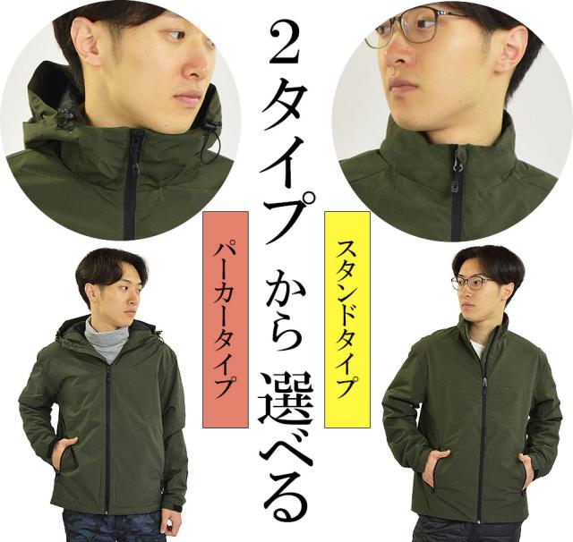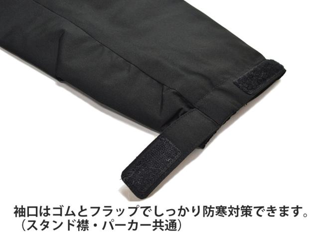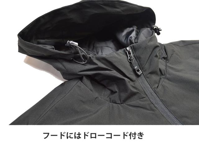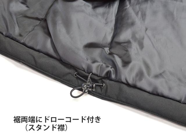■フードデザインの方はパーカーにドローコード付き、スタンドデザインの方は両サイド裾にドローコード付きでいづれも防風、防寒性を高める事が可能です。
