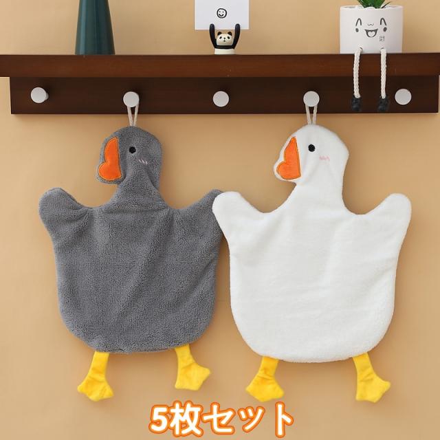 アヒルの形 ハンドタオル 5枚セット お手拭きタオル ループ付き サンゴフリース ハンドタオル 速乾 ふわふわ かわいい動物柄 おてふきタオル 吸水性 家庭用 キッチン 洗面台 保育園 プレゼント 贈り物 tow14