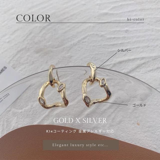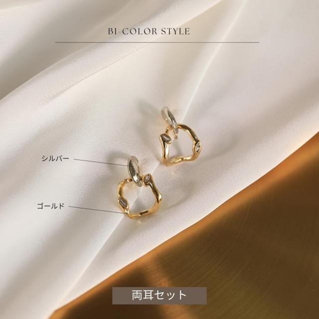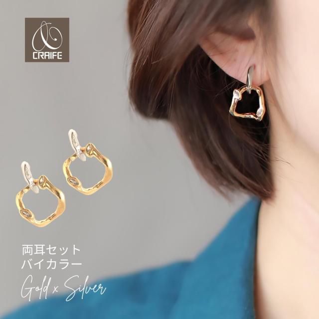 ピアス 金属アレルギー対応 バイカラー K14 コーティング ニッケルフリー ジルコニア レディース 大人 かわいい キラキラ 上品 エレガント ジュエリー ゴールド x シルバー 送料無料 プチプライス高見え CRAIFE