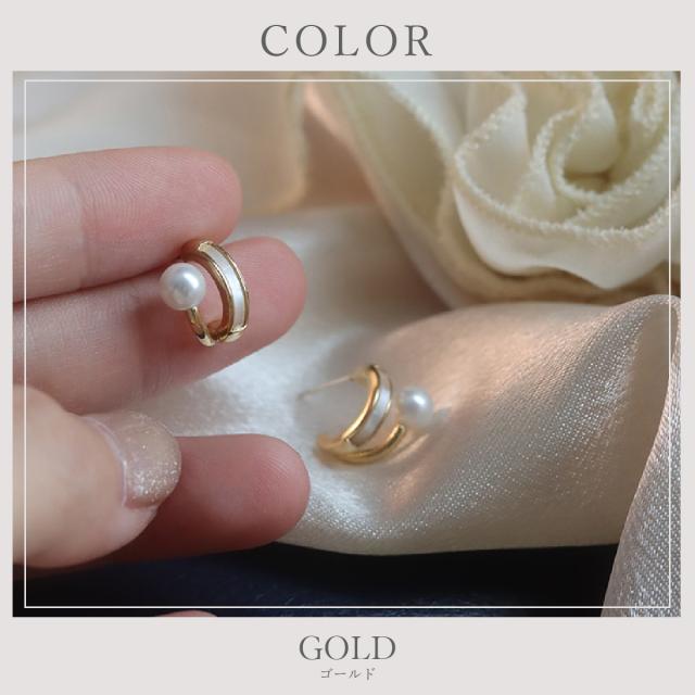 ピアス イヤリング 金属アレルギー対応 18K パール ダブルライン レイヤード シェル スタッド ニッケルフリー レディース 大人 かわいい 上品 エレガント ジュエリー ゴールド 送料無料 プチプライス高見え CRAIFE