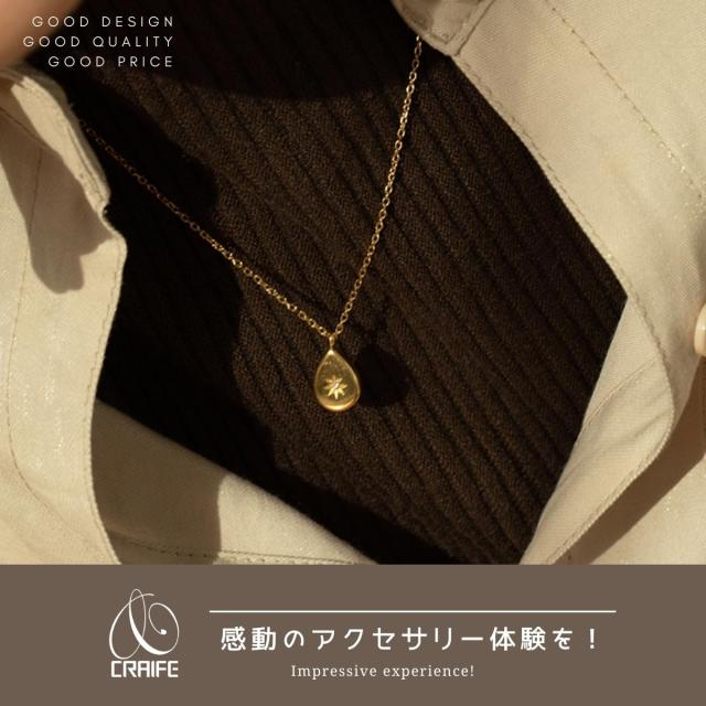 ネックレス 金属アレルギー対応 サージカルステンレス 18K K18 コーティング 雫 ドロップ ジルコニア チェーン アジャスター付き レディース 大人 エレガント 上品 ジュエリー ゴールド 送料無料 プチプライス高見え CRAIFE