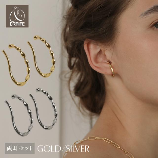イヤーカフ イヤーカフス イヤカフ 両耳セット 金属アレルギー対応 14K ニッケルフリー ツイスト ねじり レディース 大人 かわいい エレガント ジュエリー 「ゴールド / シルバー」【送料無料】プチプライス高見え CRAIFE