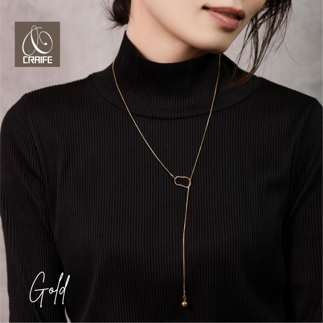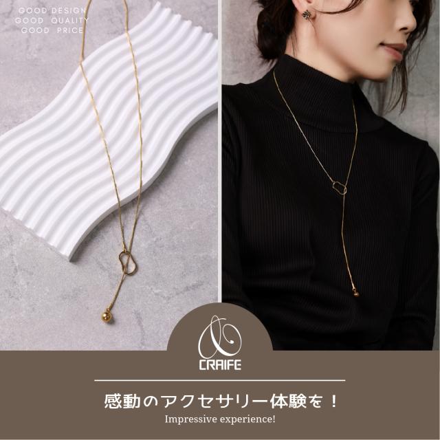 金属アレルギー対応 ネックレス サージカルステンレス 18K K18 コーティング ラリエットネックレス オーバル レディース 大人 かわいい エレガント 上品 トレンド感 ジュエリー ゴールド 送料無料 プチプライス高見え CRAIFE