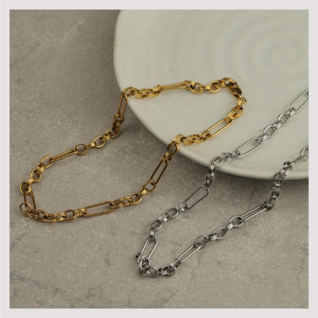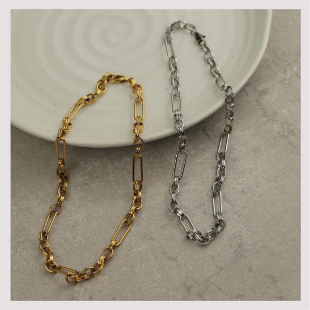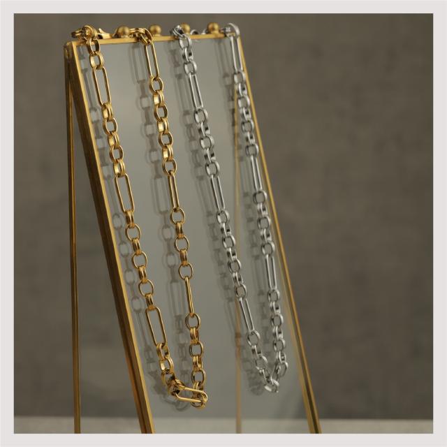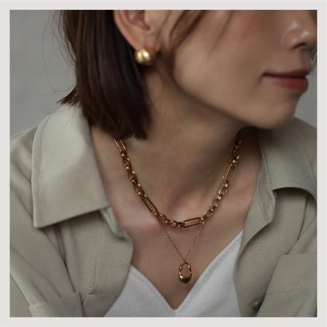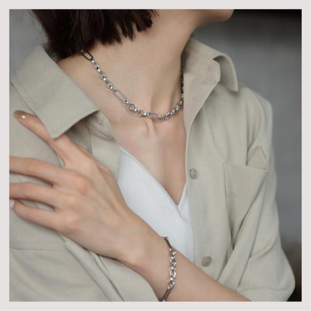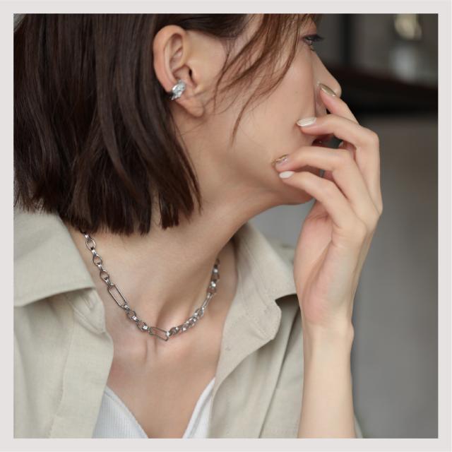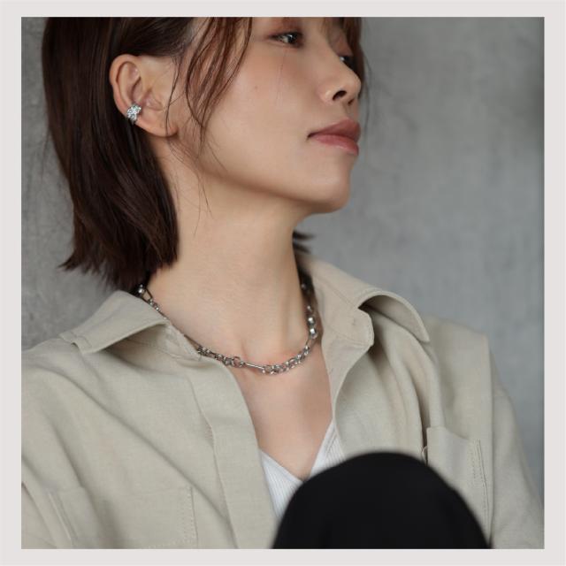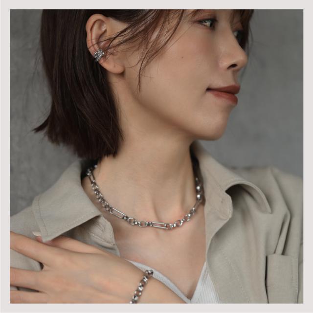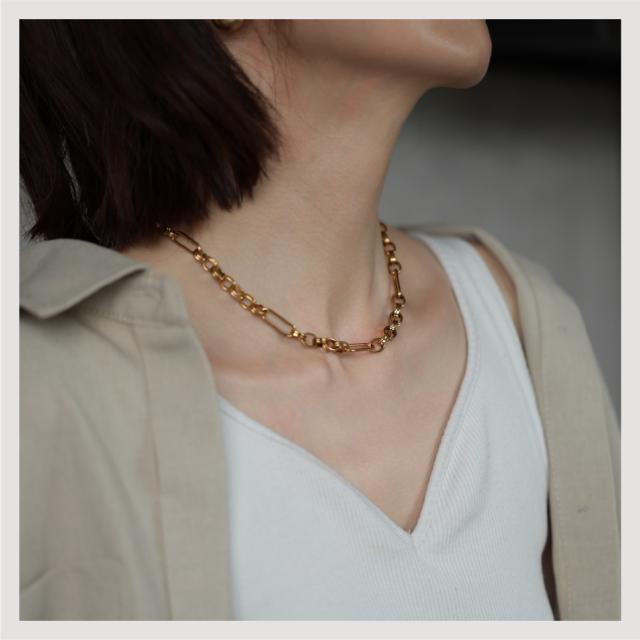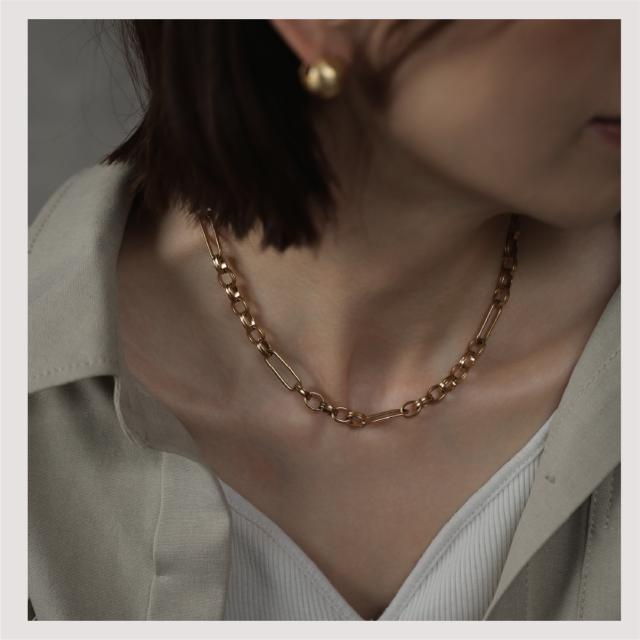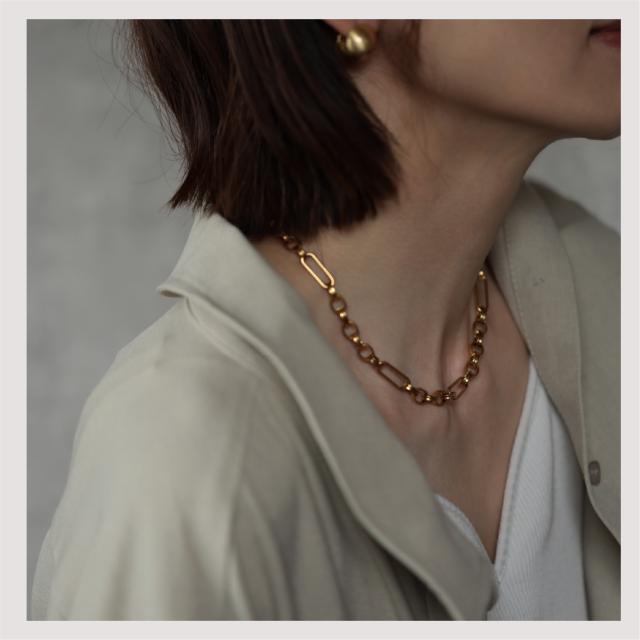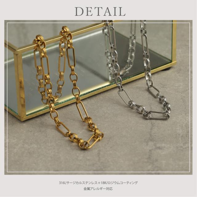 特徴:トレンド感あるチェーンデザインが特徴のネックレスです。華奢でもなく、ゴツゴツ感もそれほどなく、使いやすいサイズ感の仕上がりとなっています。サージカルステンレス製で作られており、高品質な18Kのゴールドコーティング(シルバーはロジウムコーティング)が施されています。洗練されたスタイルでありながらも、様々なシーンにもマッチする一品です。さらに、同じデザインのブレスレットもラインナップされており、セットで身に着けることで統一感のあるスタイリングを楽しむことができます。