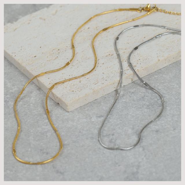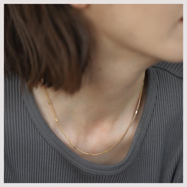 特徴:シンプルなデザインでありながら、洗練された輝きを持つチェーンネックレス。高品質なサージカルステンレス製で、18Kゴールドコーティングが上品な光沢を引き立てます。身につける人のスタイルをシンプルに魅了する一品です。