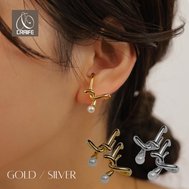 イヤーカフ イヤカフ イヤーカフス 両耳セット パール 金属アレルギー対応 18K コーティング ニッケルフリー クロス レディース 大人 かわいい エレガント ジュエリー ゴールド シルバー 送料無料 プチプライス高見え CRAIFE