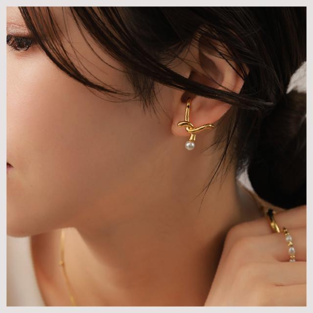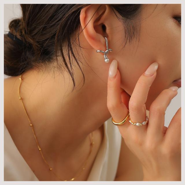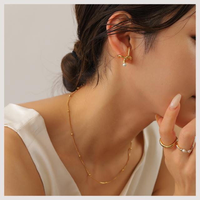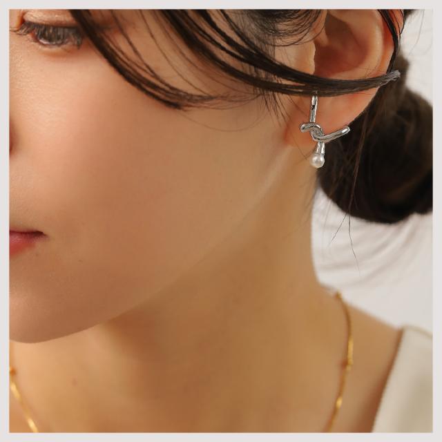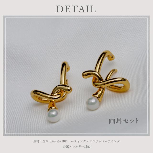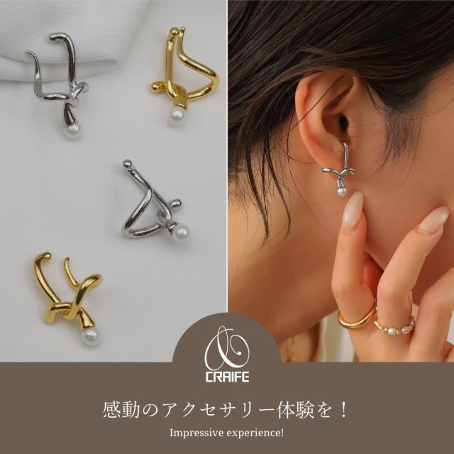 特徴:耳に纏うパールオブジェ スタイリッシュなクロスラインに、1粒のパールを配置することで、適度な抜け感を演出♪♪当社独自のコーティングを施したメタルは、輝きが非常に美しく、高級感のある仕上がりとなっています より美しい質感を出すために、CRAIFE独自の18Kコーティング加工を施したハイエンドモデル