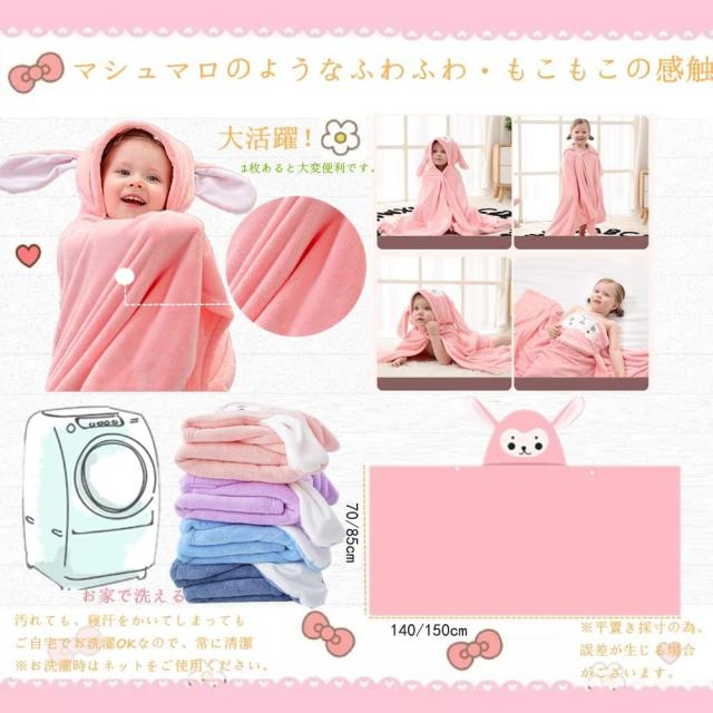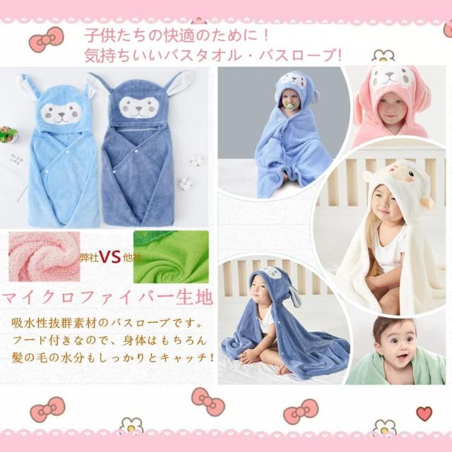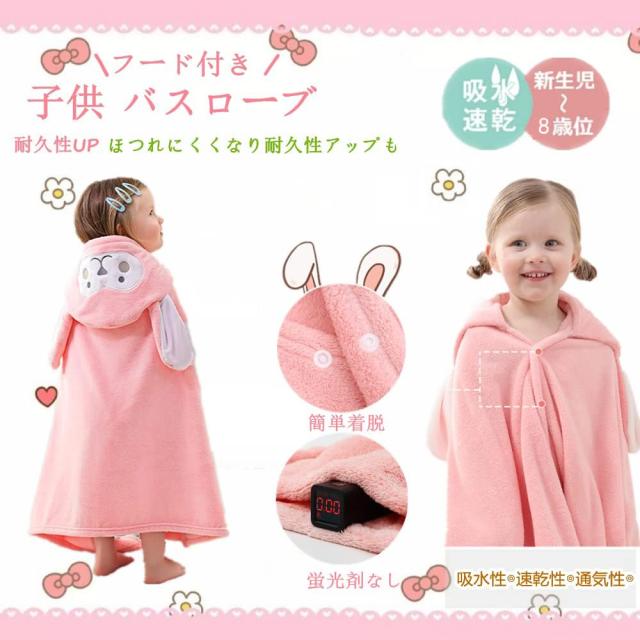 バスローブを身にまとったキッズはとにかくかわいい!簡単に着脱でき、これを身にまとえばかわいいうさぎの子供に大変身!お風呂上がりに子どもの身体を拭くのもササッと簡単に、湯冷めも防ぎます。