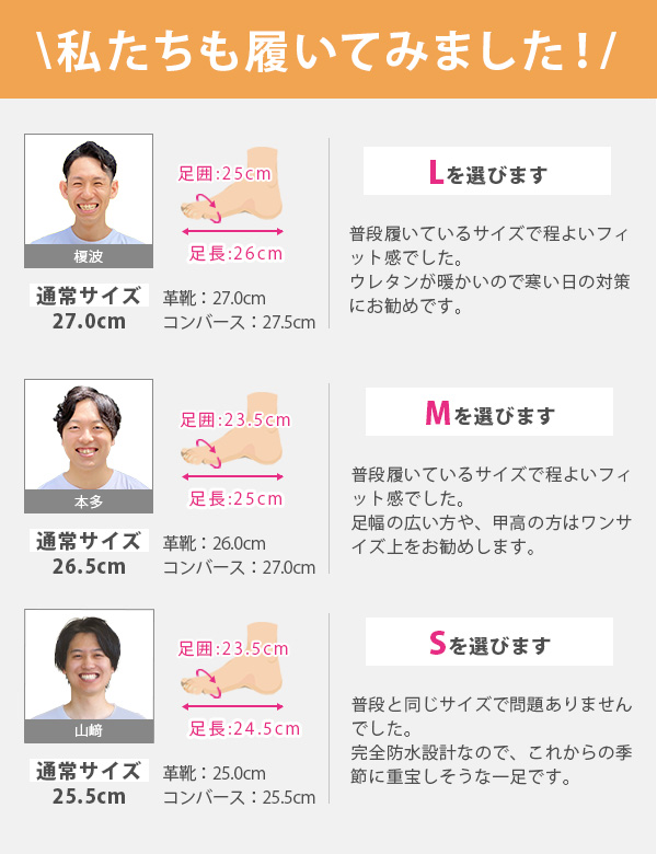 取り扱いサイズ:S[25-25.5cm] M[26-26.5cm] L[27-27.5cm] LL[28-28.5cm]