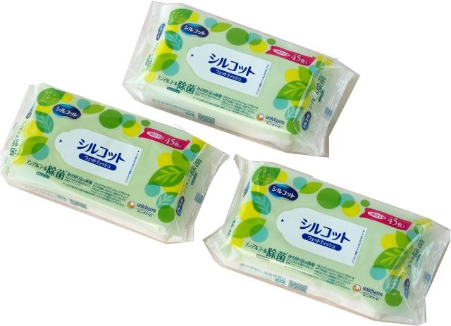 ユニ・チャーム シルコット ウェットティッシュ 本体45枚入 ×3個セット