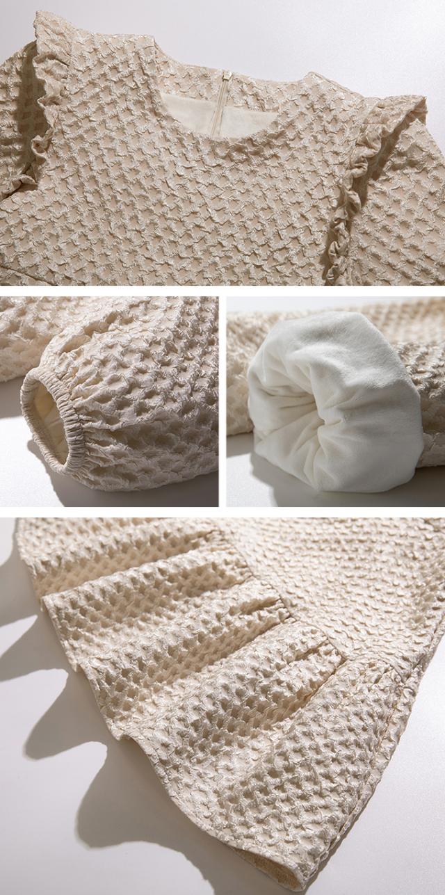 ジャガードの生地でぷくっとした小花柄が印象的な1枚。