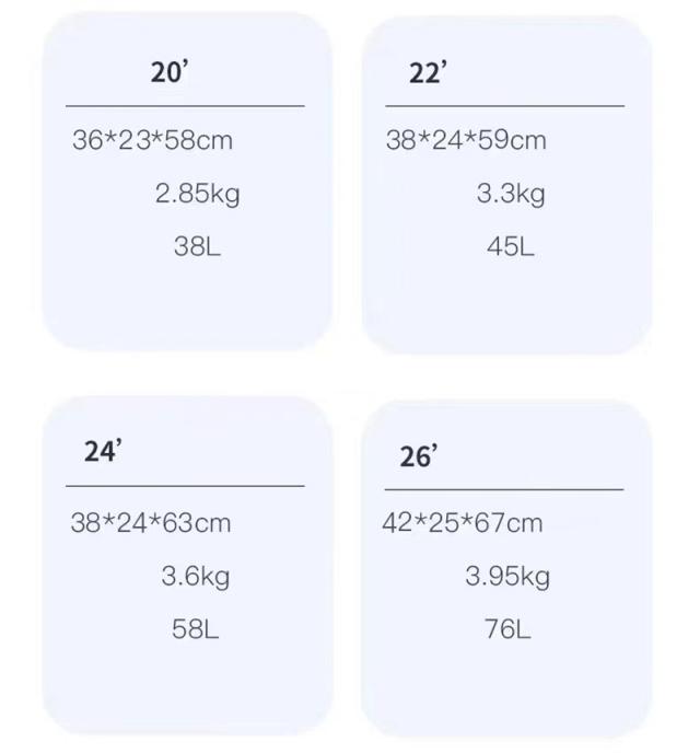サイズ:20インチ、22インチ、24インチ、26インチ