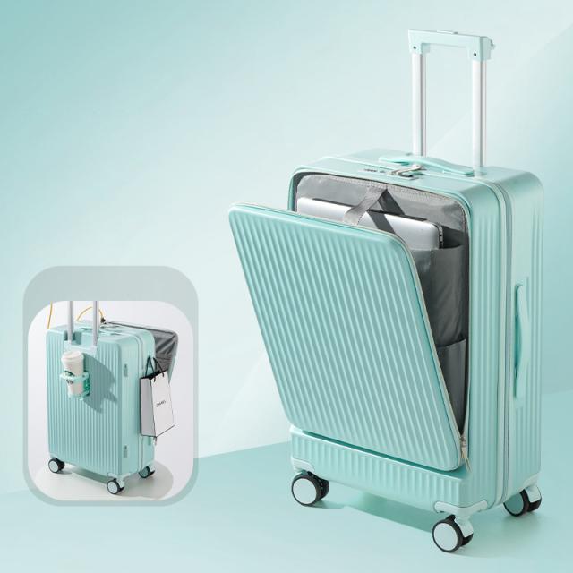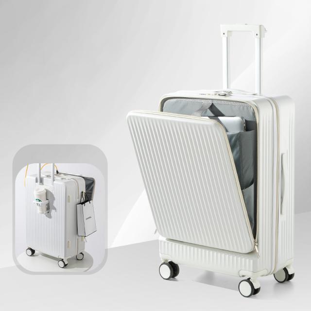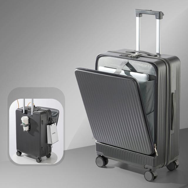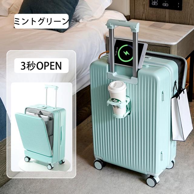 スーツケース キャリーケース キャリーバッグ 旅行 出張 軽量 フロントオープン カップホルダー付き USBポート付 PC収納 乾湿分離 静音 耐衝撃 ビジネス おしゃれ cca132