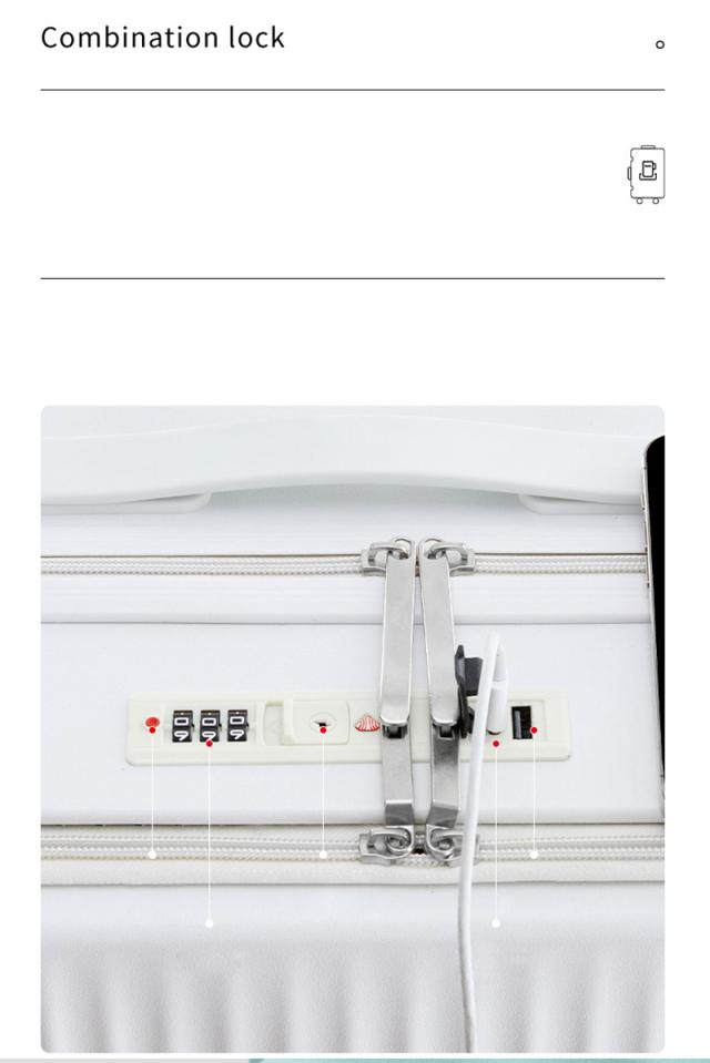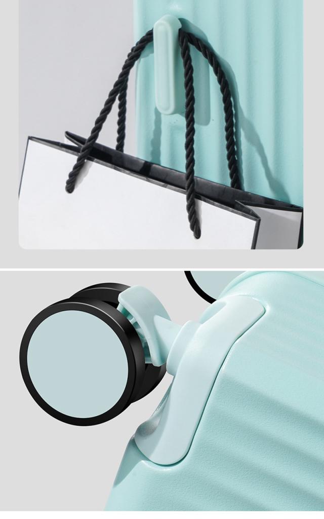 USBポートを搭載しているため、スーツケースを開けることなく充電しながら持ち運び可能。360度回転、静音仕様のダブルキャスター、音が静かになることに加え、スムーズな動きもサポートしてくれます。サイドフックやカップホルダーが搭載され、ドリンク、傘、バッグなどを配置でき、手への負担を軽減し、旅行を楽しむ!
