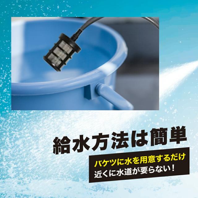 | 仕様 | 仕様/電源:専用バッテリー21V、吐出水量:3.5L/min、充電時間:約3-4時間、連続使用時間:約15分、バッテリー容量:約6000mAh |