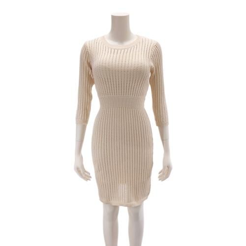 ウエストの切替でニットの重さを感じさせない軽やかなワンピースはストールやシューズ等でイメージチェンジが楽しめます。