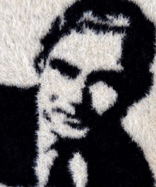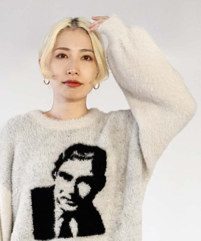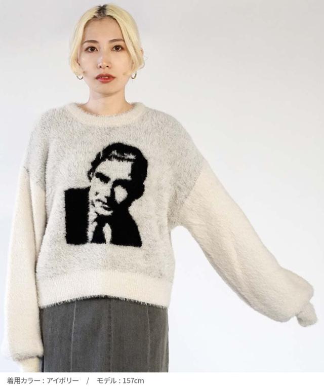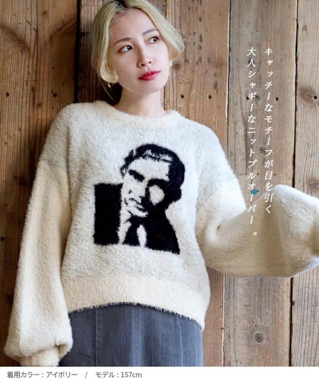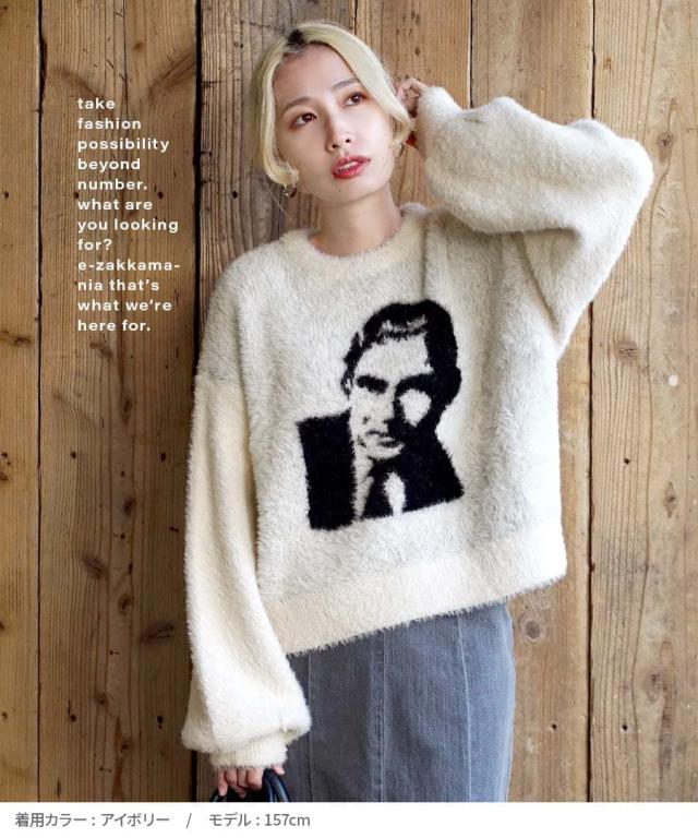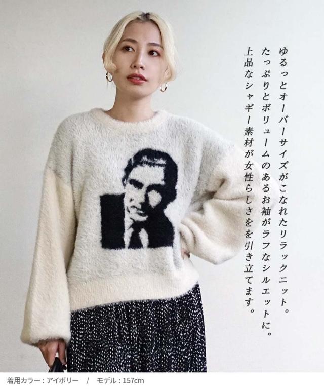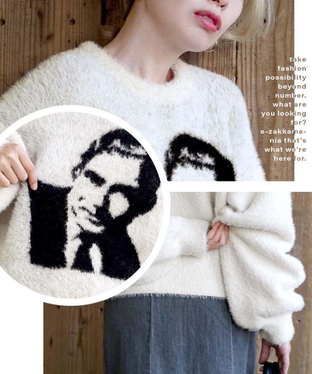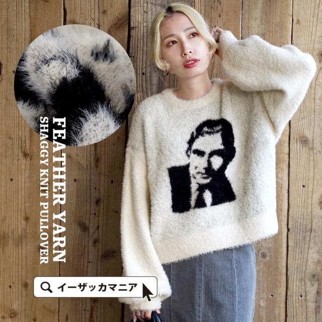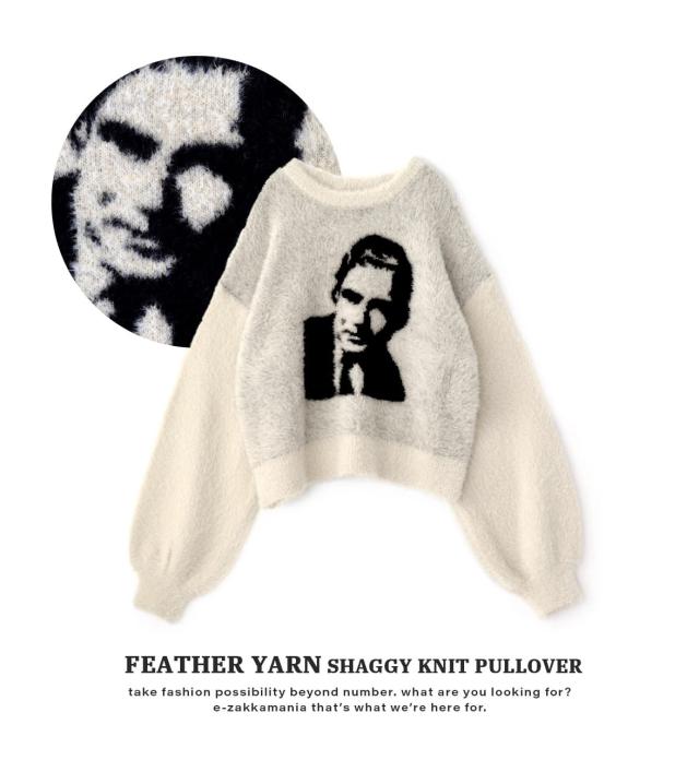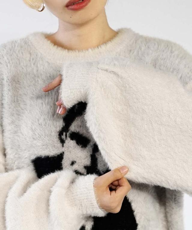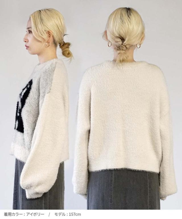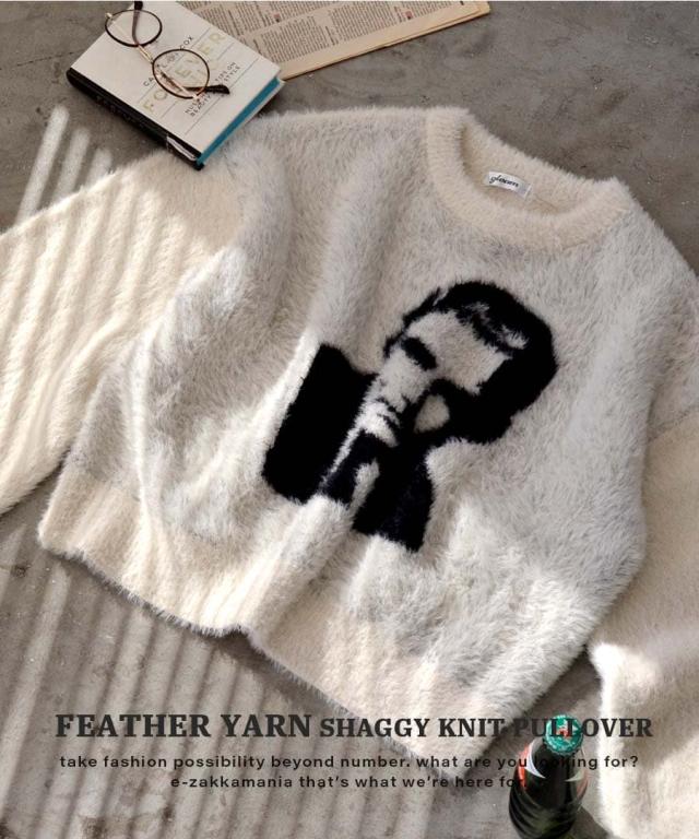 フロントのモチーフがユニークでインパクトのあるシャギーニット。