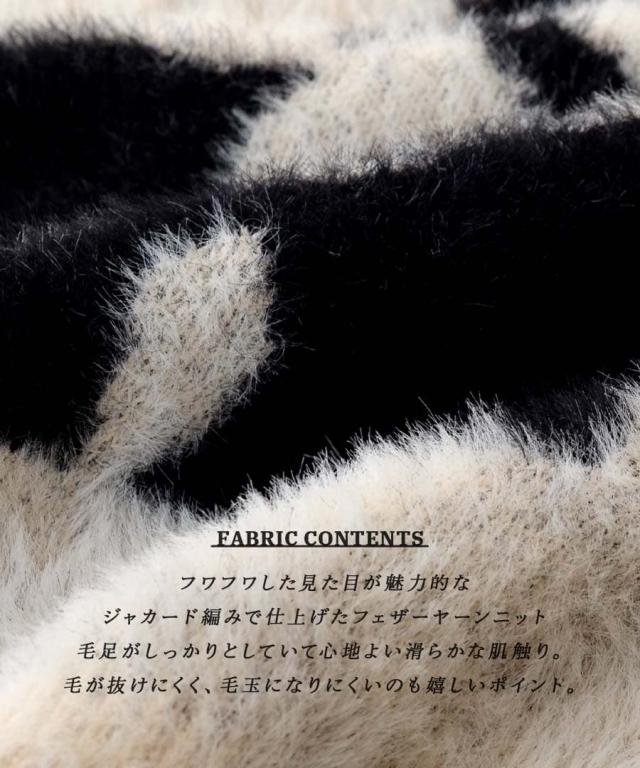 冬新作 新作 新着 フェザーヤーン シャギー ニットプルオーバー レディース トップス ニット セーター カットソー プルオーバー ニットウェア シャギーニット ジャガード ロゴニット ロゴ 大きいサイズ 30代 40代 50代 60代 レトロ ジャガードニット