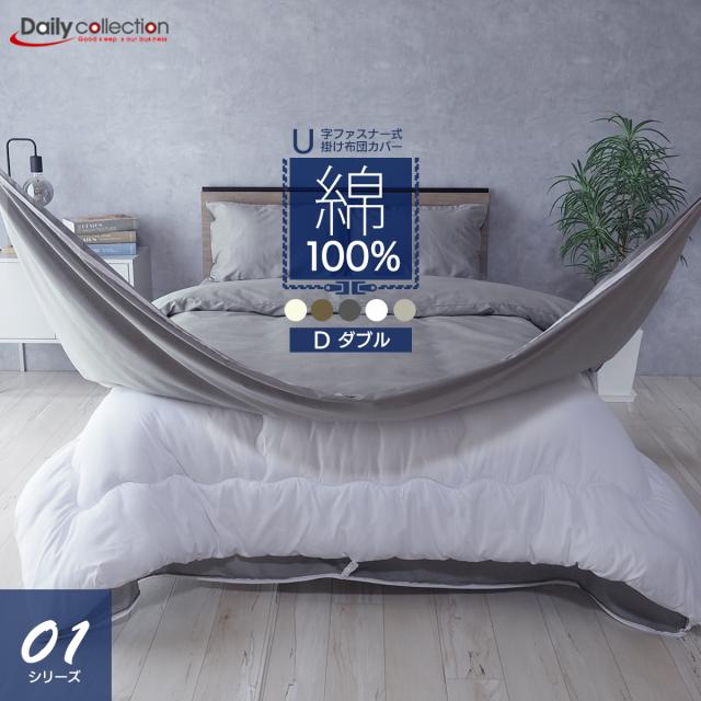綿100% ダブル 掛け布団カバー U01 U字ファスナー デイリーコレクション01シリーズ 200スレッド 200本