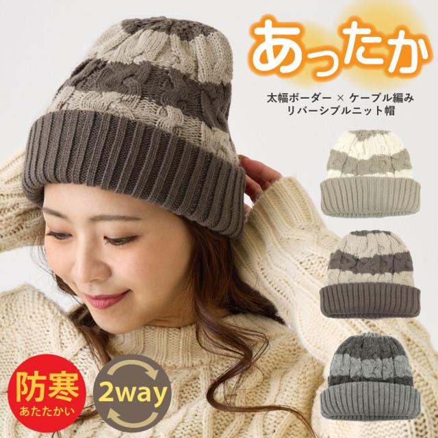 ニット帽 レディース 帽子 ボーダー編み&リブ編み リバーシブル あったかニットキャップ 厚手 ワッチ knit-1706 ボリューム感 ニット帽 メンズ 秋冬 帽子 カジュアル 防寒 暖かい シンプル 男女兼用 お洒落 ギフト プレゼント