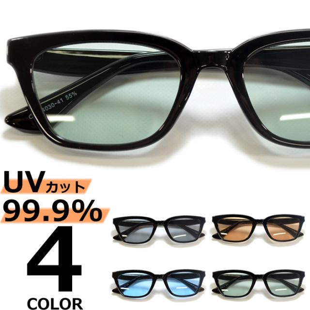 サングラス 伊達メガネ メンズ レディース スクエア 四角 ウエリントン ライトカラーレンズ 薄い色 ブラック グレー スモーク ブラウン ブルー グリーン 全4色
