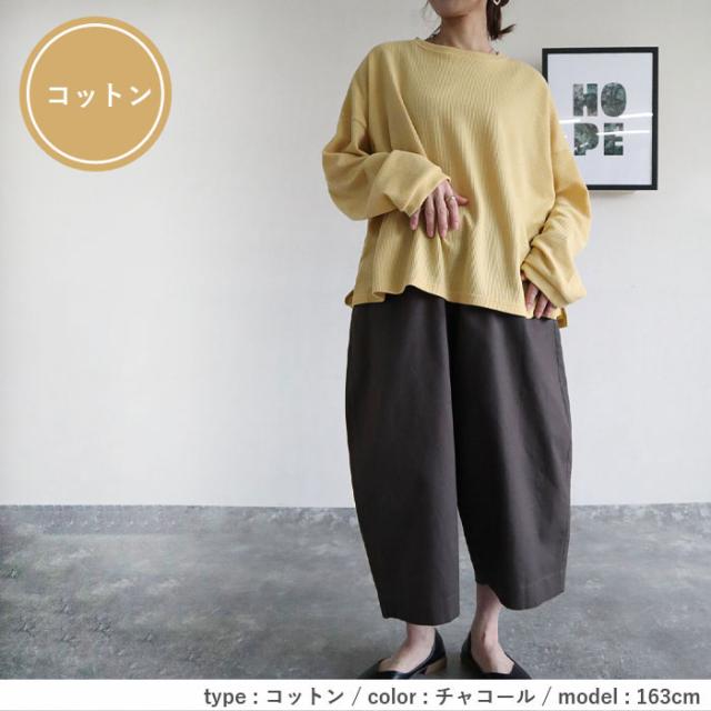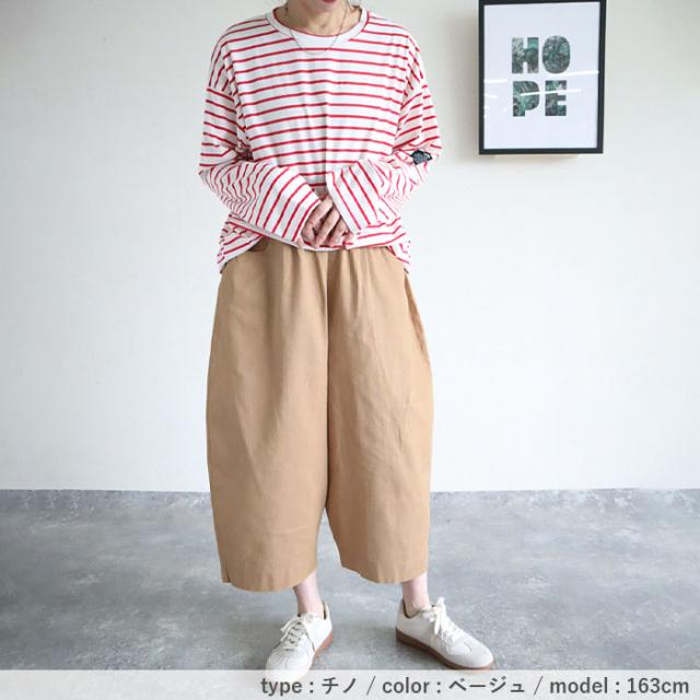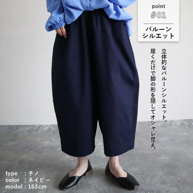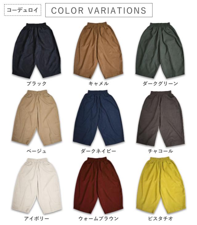 ・ゆったりしたバルーンシルエット ・ウエストゴム仕様 ・大きめのポケット ・豊富なカラーと生地のバリエーション |