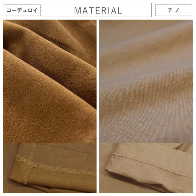 コーデュロイ:細畝(うね)で柔らかく薄手のコーデュロイ素材 チノ:張りのあるしっかりしたコットン素材 |