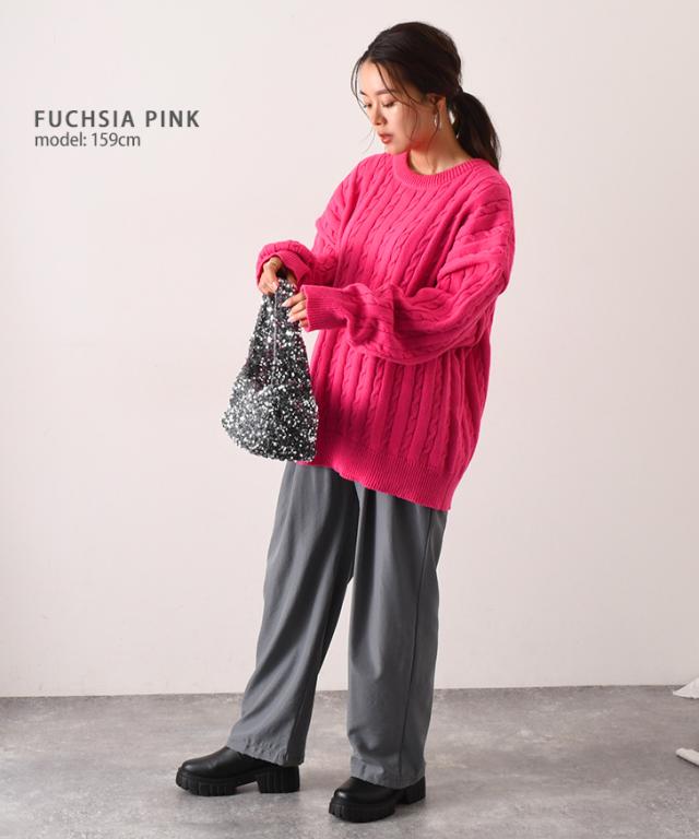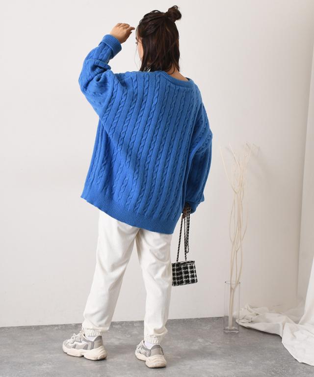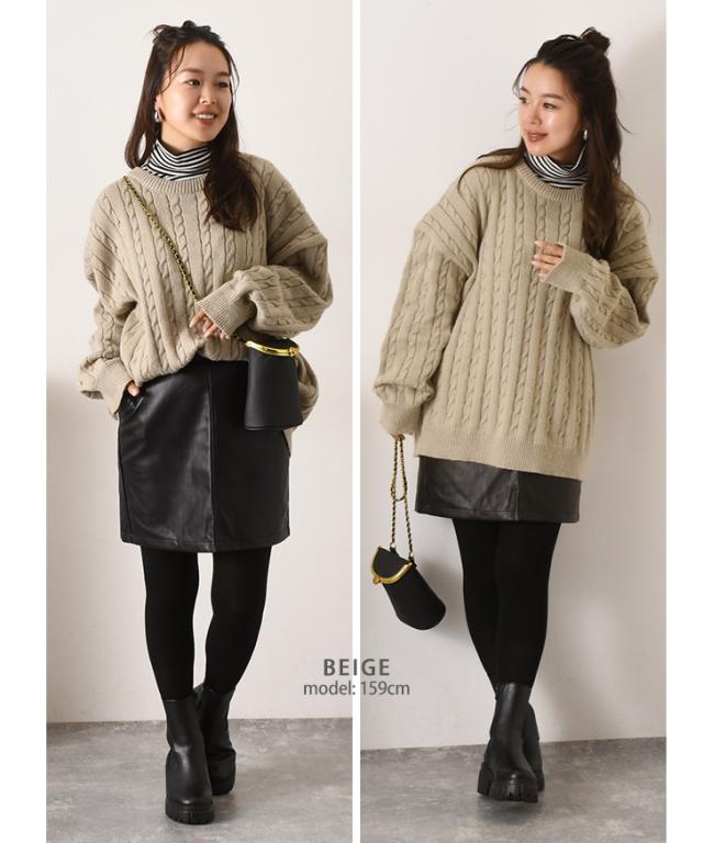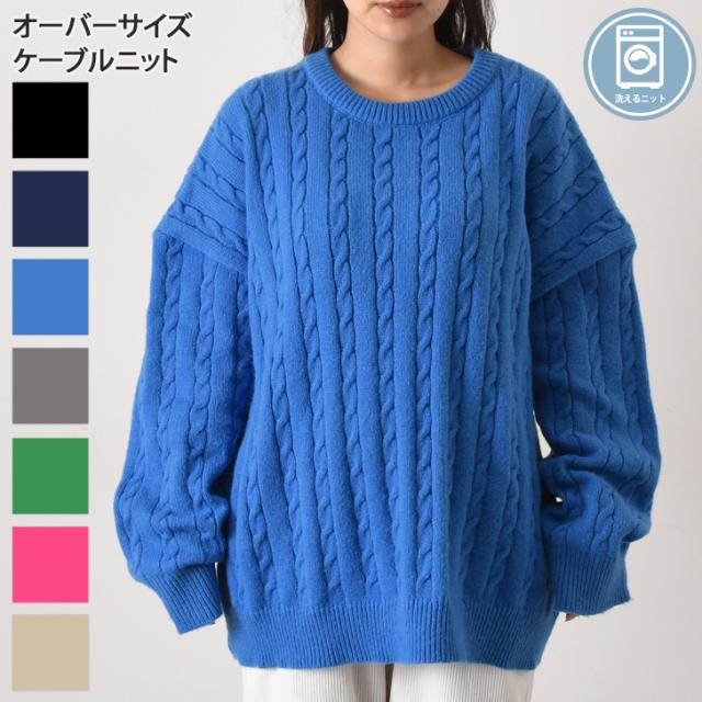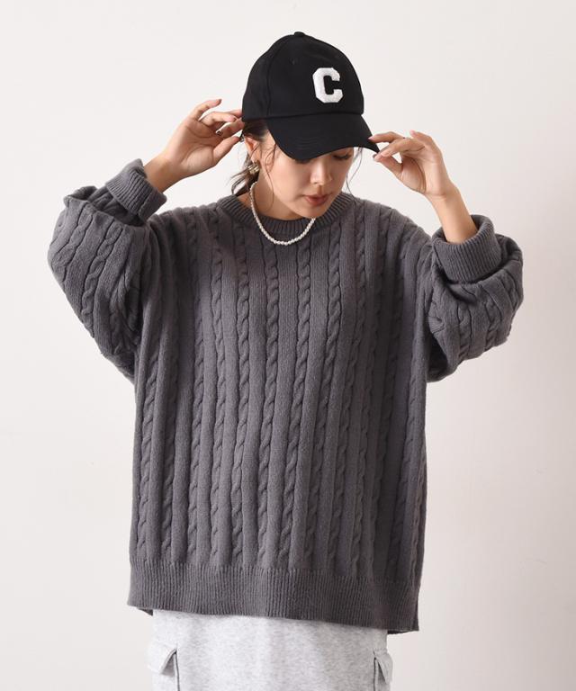 新作 ラウンドネックオーバーサイズケーブルニット レディース メンズ トップス 長袖 ケーブルニット オーバーサイズ 大きいサイズ ビッグサイズ ビッグシルエット チュニック 秋 冬 秋冬 着回し ゆったり セーター