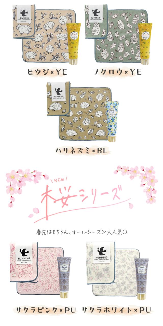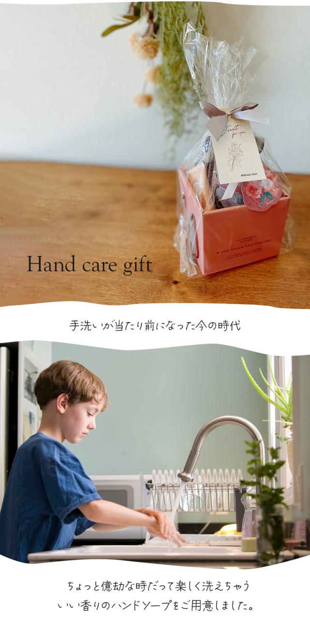 ハンドソープ(240ml)とタオルハンカチ、30g入りハンドクリームのBOX入りギフトです。