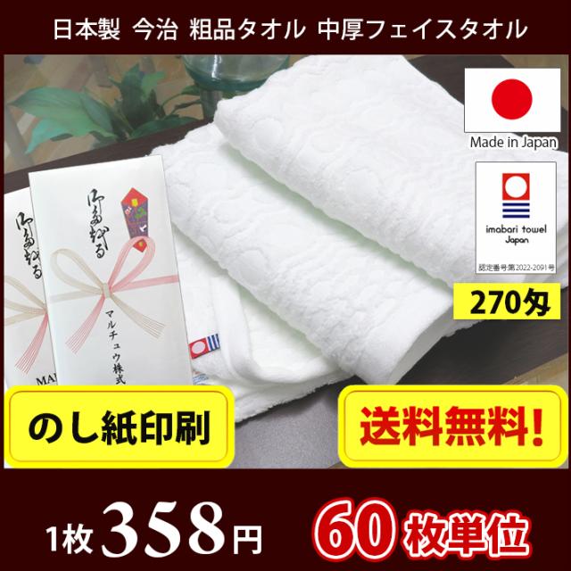 【送料無料】60枚単位 粗品タオル 【のし紙印刷】 日本製 今治タオル 270匁 ポルカ フェイスタオル / 今治 タオル まとめ買い 国産 御年賀 お年賀 ご挨拶 あいさつ 御多織る 引越し 記念 参加賞
