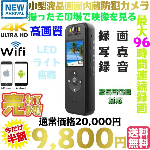 最新4K液晶画面付き超小型防犯カメラ いつでもその場で液晶画面から録画や写真など確認できます。