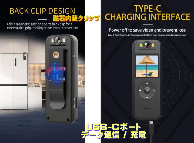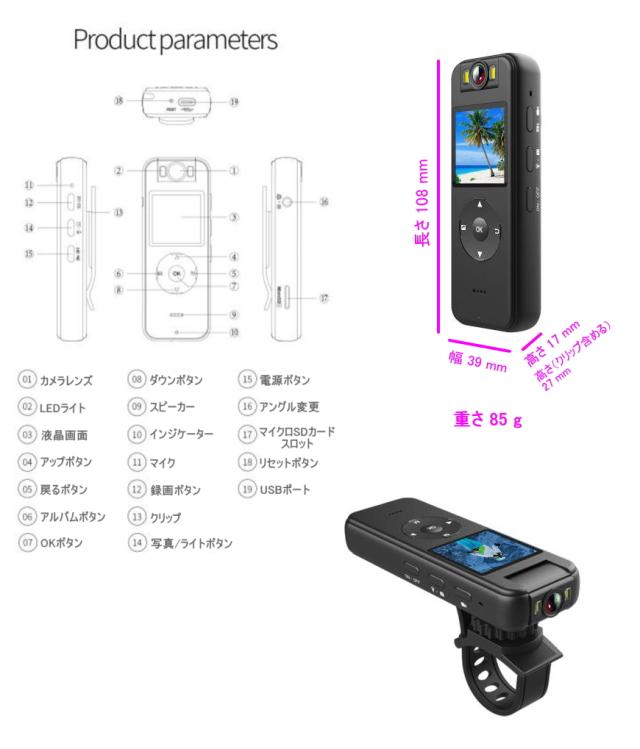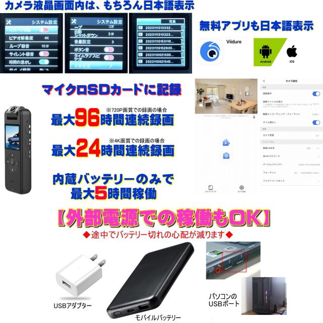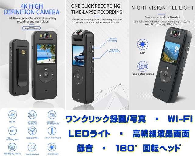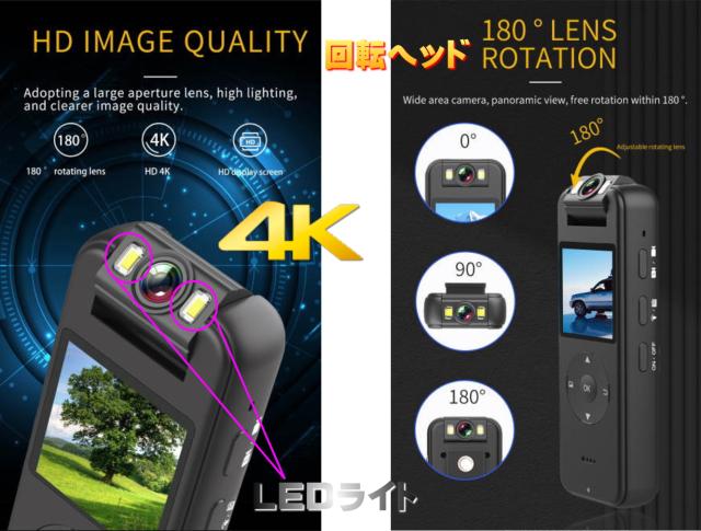 高画質 4K,2K,1296,1080P,720P 録画!最大5時間バッテリー稼働!マイクロSDカード最大4日間連続録画!1.4インチTFTカラーLCD液晶画面内蔵。