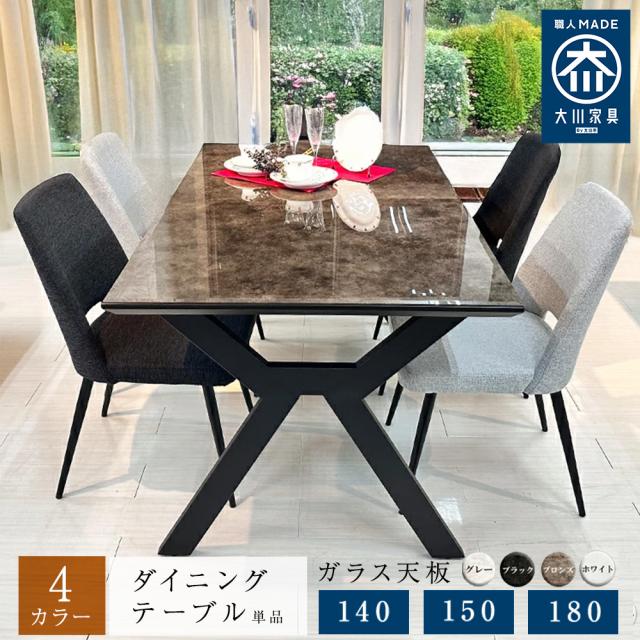 ダイニングテーブル 単品 ガラス 国産 4人 高級 150 ガラステーブル 耐熱 グレー ブラック 黒 ホワイト