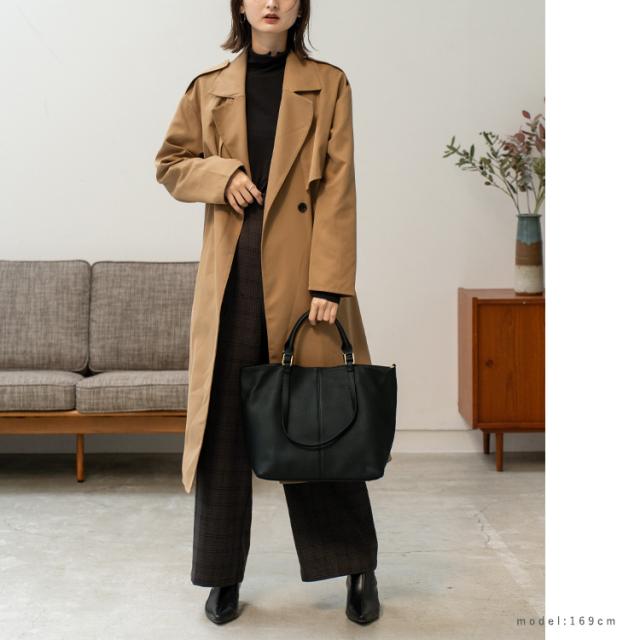 リーチが長めのショルダーハンドルはアウターの上からでも肩掛けが可能。