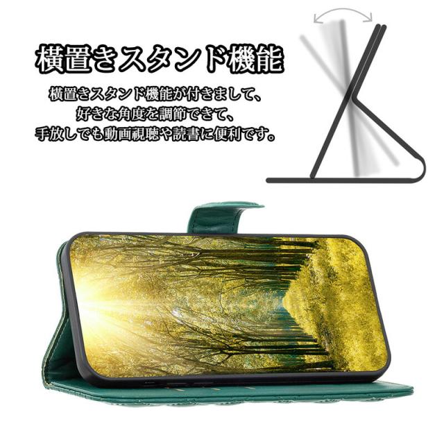 【収納機能】手帳型ケースの内側にはカード入れのポケットが付くため、カード類や紙幣 、名刺、免許証などを入れることができ、日常の生活に便利です。なお、入れすぎるとふたが閉じづらくなりますので、ご注意くださいませ。