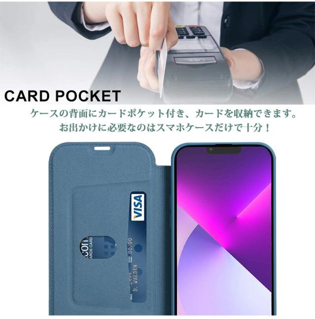 【カードポケット付き】ケースの背面にカードポケット付き、カード類、お札、コインなどを収納できます。お出かけに必要なのはスマホケースだけで十分!