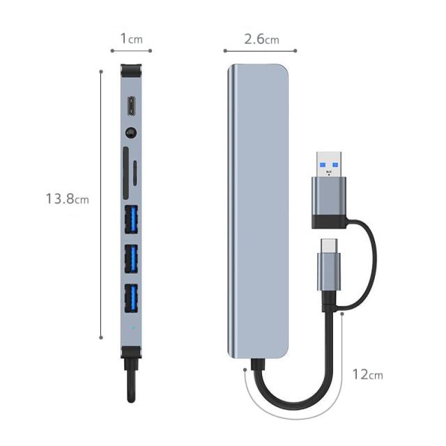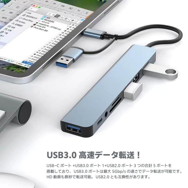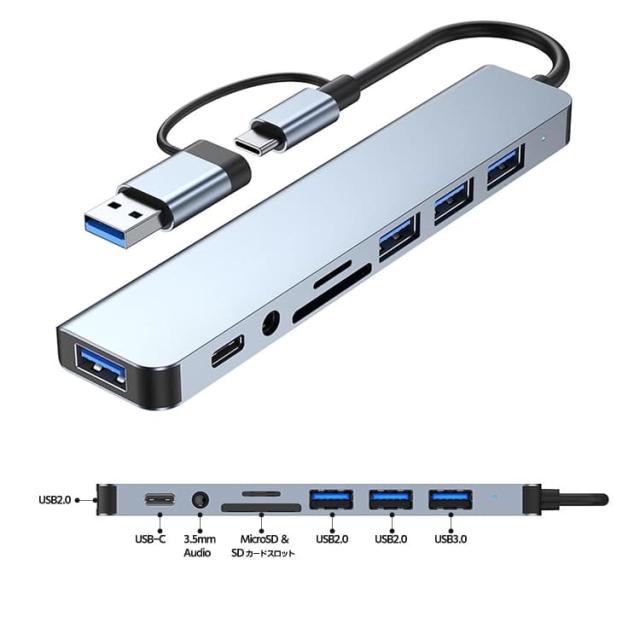 USB3.0&Type-C 8-in-1ハブ USBハブ Type-Cハブ USB3.0 高速5Gbps SD/microSDカードリーダー UTMR8IN1